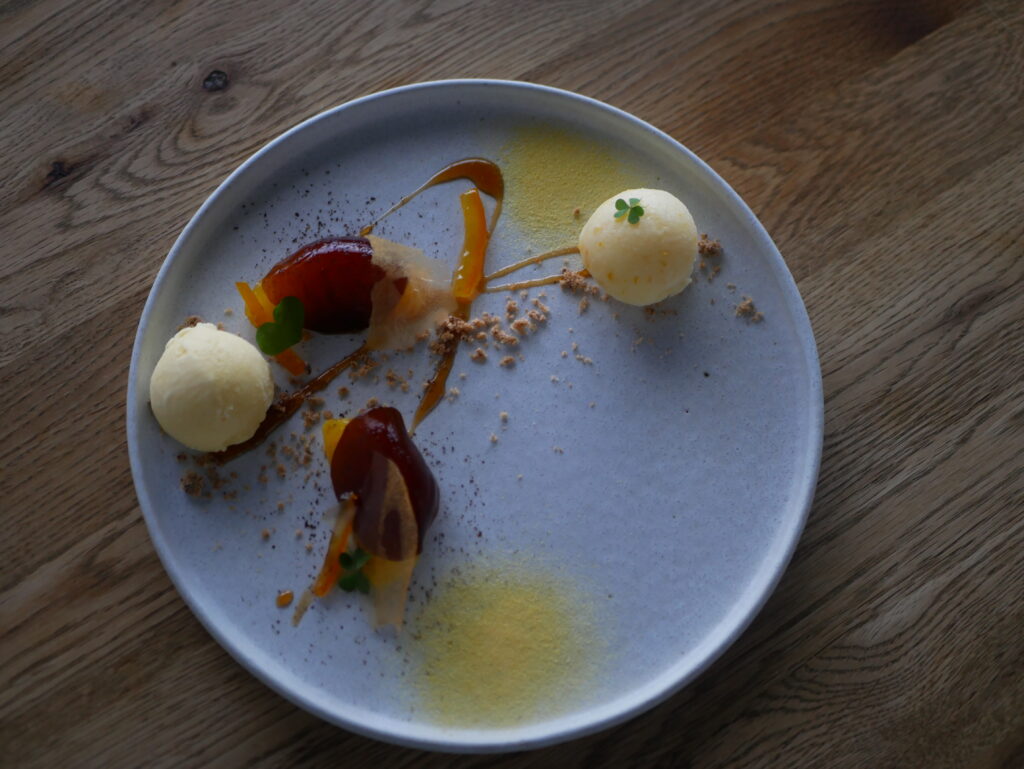 爽やかな酸味とほのかな苦味を感じる柑橘のソルベは、皮まで余すことなく使用しています。